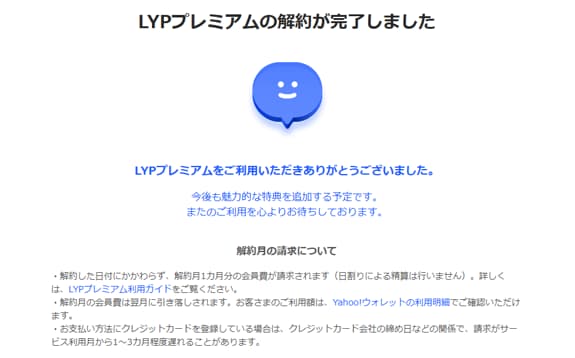 注意:解約画面にも表示されている通り、LYPプレミアムの月額508円は日割り・返金されません。