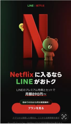 Netflixの人気作品を追加料金なしで楽しめるため、動画配信サービスをこれから使いたい人や、すでに利用している人にとってはお得なプランです。ただし、LINEアプリ経由での申し込みが必要です。